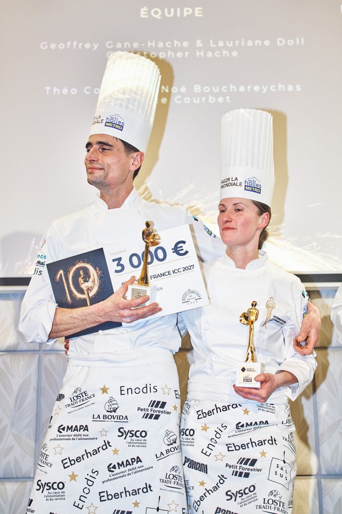 Les résultats ont été proclamés le lendemain dans l’enceinte du Pavillon Elysée située sur l’avenue des Champs-Elysées. Un lieu prestigieux à la hauteur de l’événement qui vit le jour à l’occasion de l’Exposition universelle de 1900. L’équipe lauréate, constituée du trio Geoffrey Gane-Hache, Lauriane Doll et Christopher Hache, put difficilement contenir son émotion tandis que le suspense était à son paroxysme. « À l’occasion de cette 10ème  édition anniversaire de l’ICC, qui marque 20 ans d’excellence, nous démontrons une nouvelle fois notre capacité à former, soutenir et révéler des talents capables de rayonner à l’international. Notre ambition est claire : porter haut les couleurs du métier de traiteur français », déclara Joël Mauvigney, le président-fondateur du concours. Il a appelé les passionnés de gastronomie à ne pas manquer la finale de l’ICC qui se tiendra au Sirha à Lyon du 19 au 21 janvier 2027. Le spectacle s’annonce prometteur !