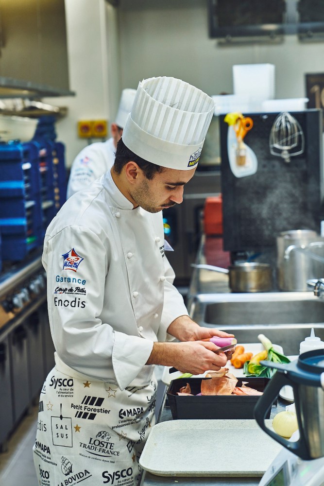 Le CEPROC a eu le plaisir d’accueillir, le 2 février, les épreuves des sélections France pour la finale 2027 de l’International Catering Cup (ICC), la Coupe du monde des traiteurs sous l’égide de la CNCT. Un événement gastronomique d’envergure internationale opposant deux trios expérimentés. D’un côté, Geoffrey Gane-Hache, Lauriane Doll et Christopher Hache ; de l’autre, Théo Courbet, Noé Bouchareychas et Fabrice Courbet. Les apprentis de 2ème année BP charcutier-traiteur étaient également de l’aventure avec Krys Bametz et Peyo Mounet aux postes de commis dans chacune des deux équipes ; tandis que les autres étaient affectés au support logistique. Présidé par Joël Mauvigney et conduit par les MOF charcutiers-traiteurs Jauffrey Mauvigney, Christophe Tourneux et Julien Denjean, le jury a eu du pain sur la planche pour délibérer tant le duel était disputé.