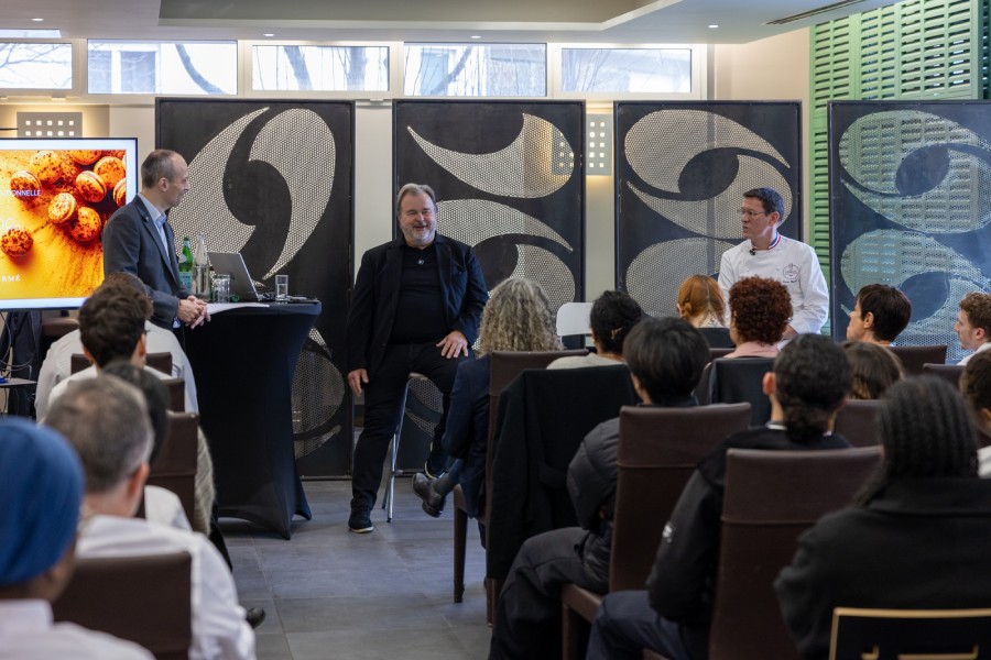 Figure de proue de la pâtisserie française, le chef Pierre Hermé a tenu, le 27 février dernier, une conférence au CEPROC de près de deux heures de temps, au grand bonheur des apprentis venus en nombre pour se délecter de ses propos. Une rencontre captivante durant laquelle, le pâtissier a retracé les cinquante années de sa carrière haute en couleurs : depuis ses premiers pas en apprentissage à Colmar, ses débuts professionnels chez Lenôtre en 1976, en passant par ses collaborations remarquées au sein des maisons Fauchon et Ladurée à Paris dans les années 1990, le lancement de la Maison Pierre Hermé Paris depuis Tokyo, prélude d’une carrière entrepreneuriale flamboyante tant à l’échelle nationale qu’internationale.