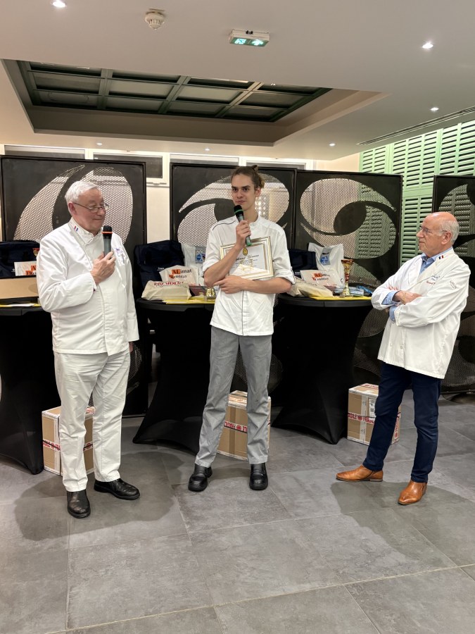 Evoluant au sein de la maison la Fabrique aux Gourmandises à Paris, Jules Thiran a été accompagné par ses formateurs de pratique Franck Fermin et Jérôme Chaucesse. Un grand bravo à Jules pour son engagement et sa progression tout au long des préparatifs de ce beau concours.