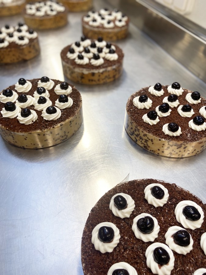 Les apprentis de la promo 2ème année BP charcutier-traiteur ont pris part le 20 janvier à une masterclass de pâtisserie animée par le MOF pâtissier Jérôme Chaucesse, formateur au CEPROC. Au menu des réjouissances, la réalisation de deux grands classiques de la pâtisserie française : forêt noire et charlotte caramel vanillé et poire. La session a notamment porté sur les techniques d’élaboration et de cuisson du biscuit, le montage en strates, la préparation des crèmes, la décoration…